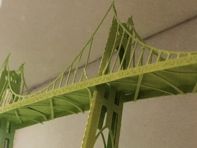 Handmade to scale each Portland bridge is made from construction paper standing at 1”-3”. People on Bridges stand at 1/8”.