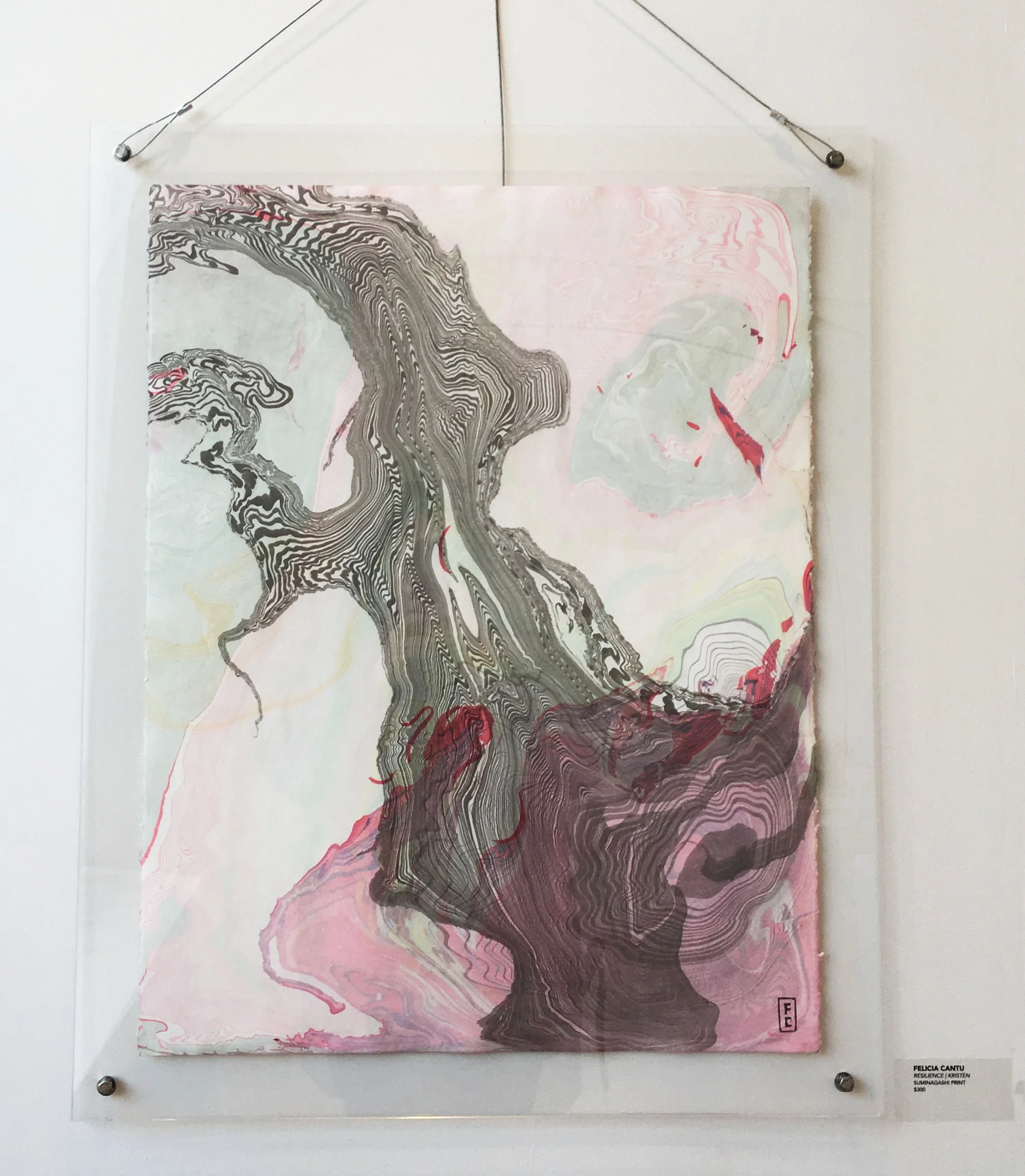 After learning the artform of Suminagashi on my own during my Japanese post- bacc. I traveled to Japan and backpacked to meet Fukuda Sensei a Master of Suminagashi in a remote village known for their handmade washi paper. It was there I was inspired to make a series of prints reminiscent of those closest to me and was eventually shown at Multnomah Arts Center.